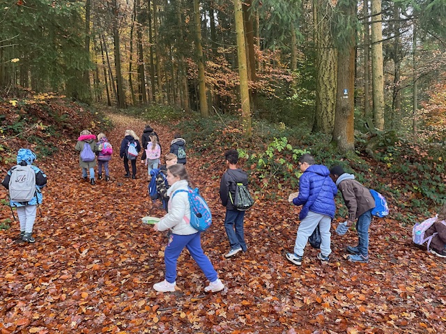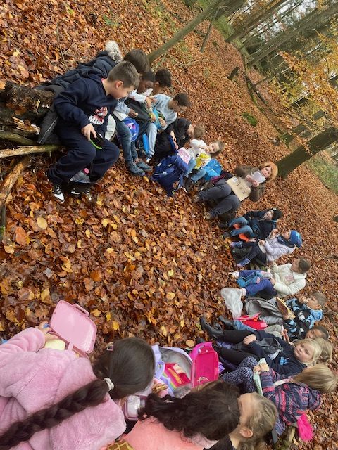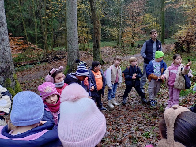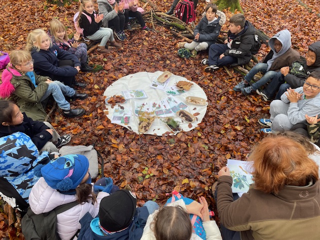 Am 11.11.2025 machten sich die Klassen 2b und 2d gemeinsam auf den Weg in die Winterhelle, um dort die Försterin Frau Limpert sowie die Waldpädagogin Frau Wagner zu treffen.